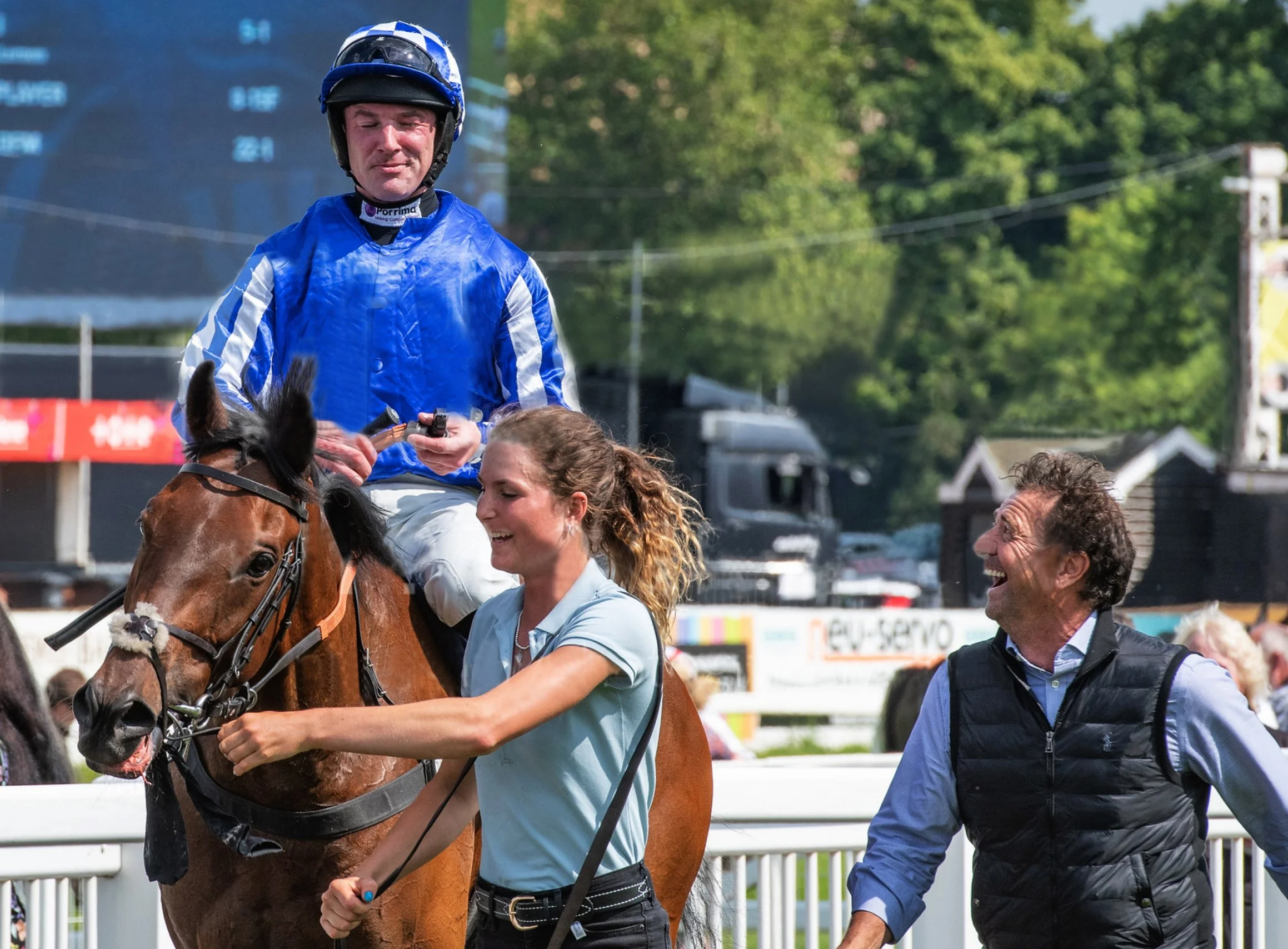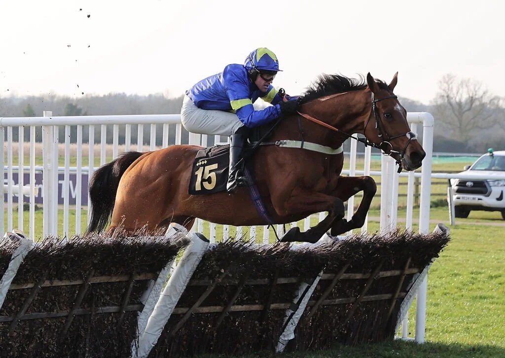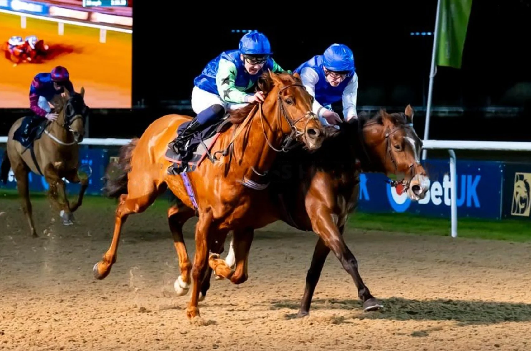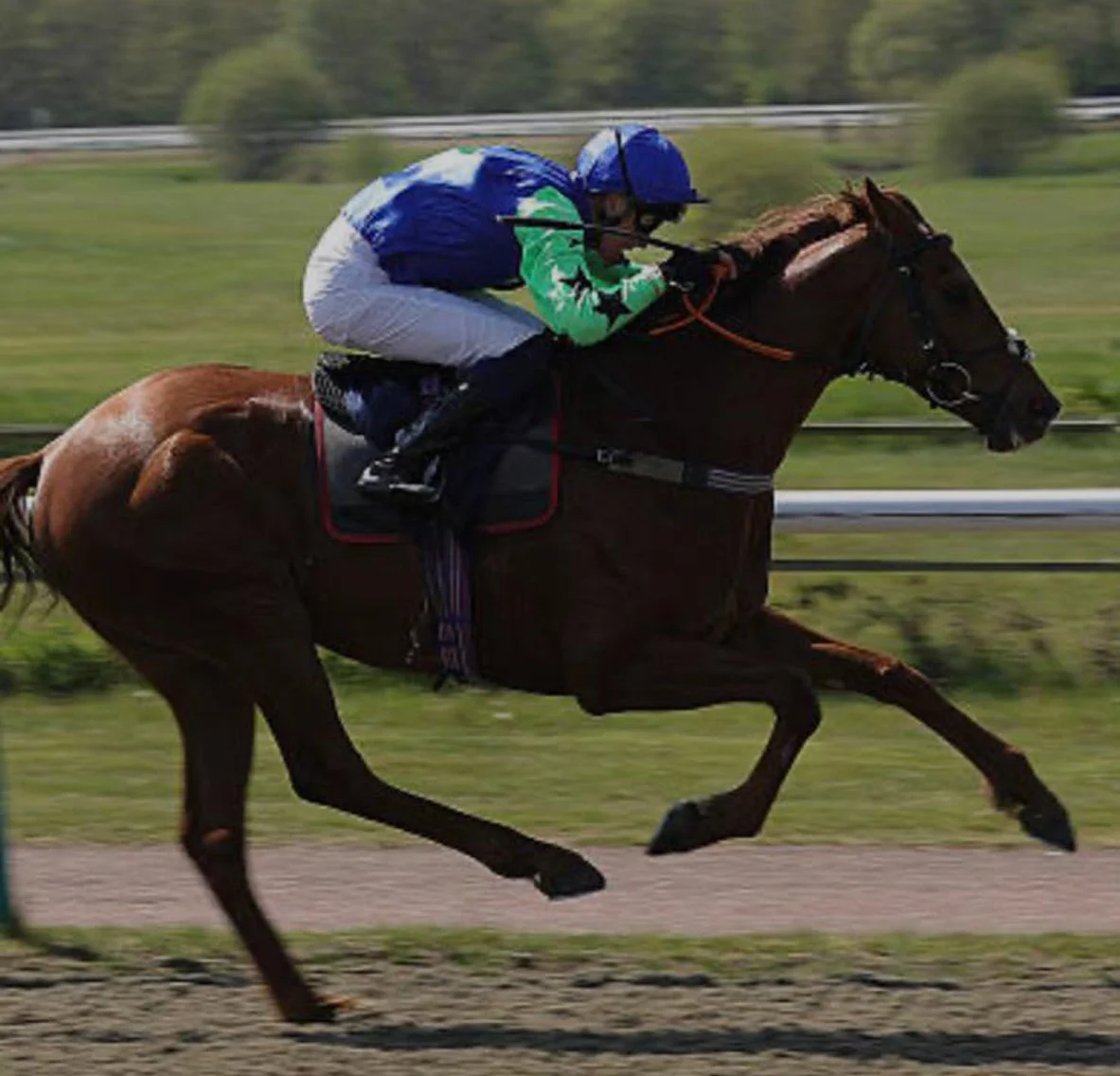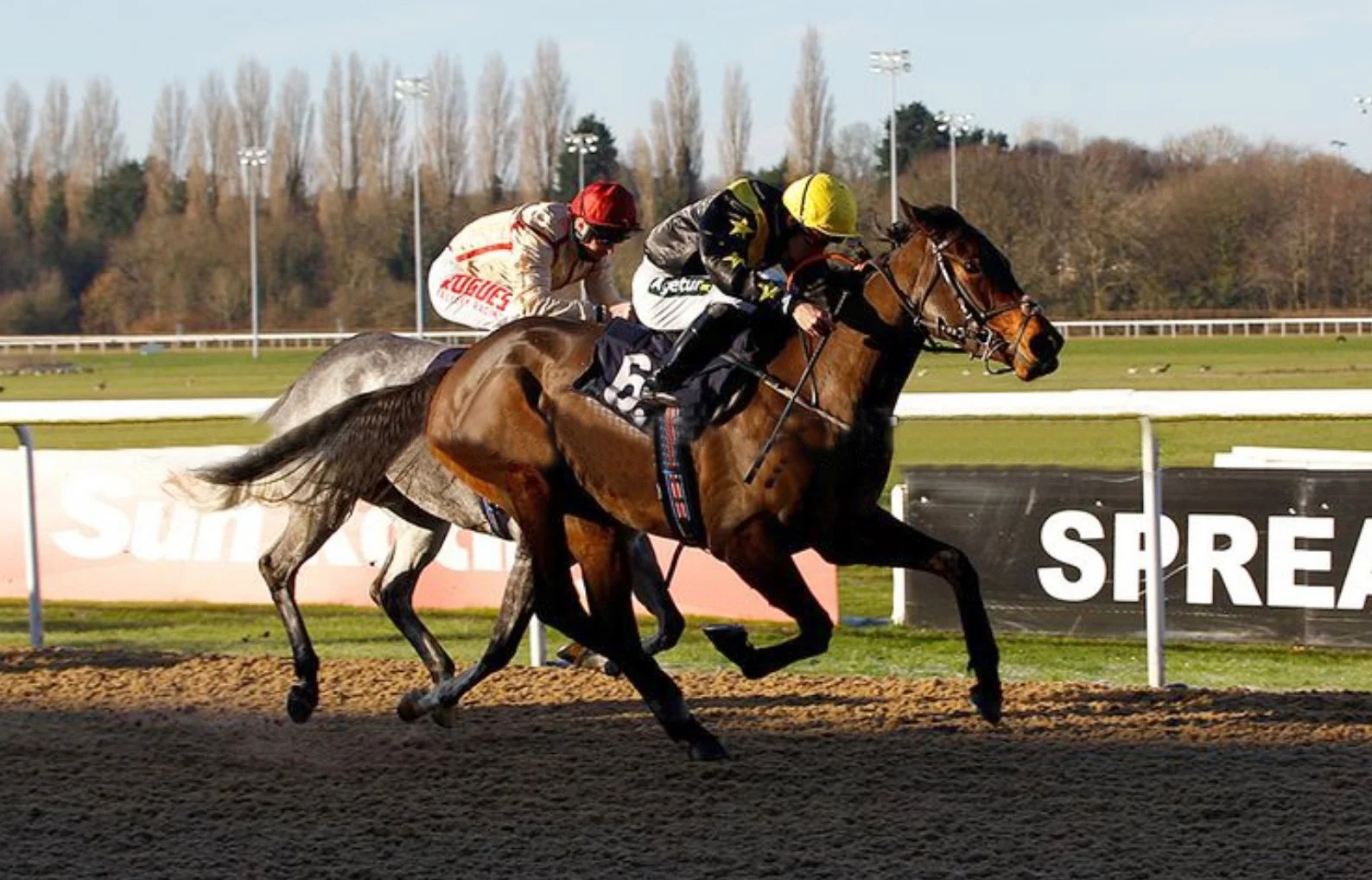 A black background featuring a white silhouette of a horse and rider in racing motion above the letters 'GB' and the word 'RACING' in white.
